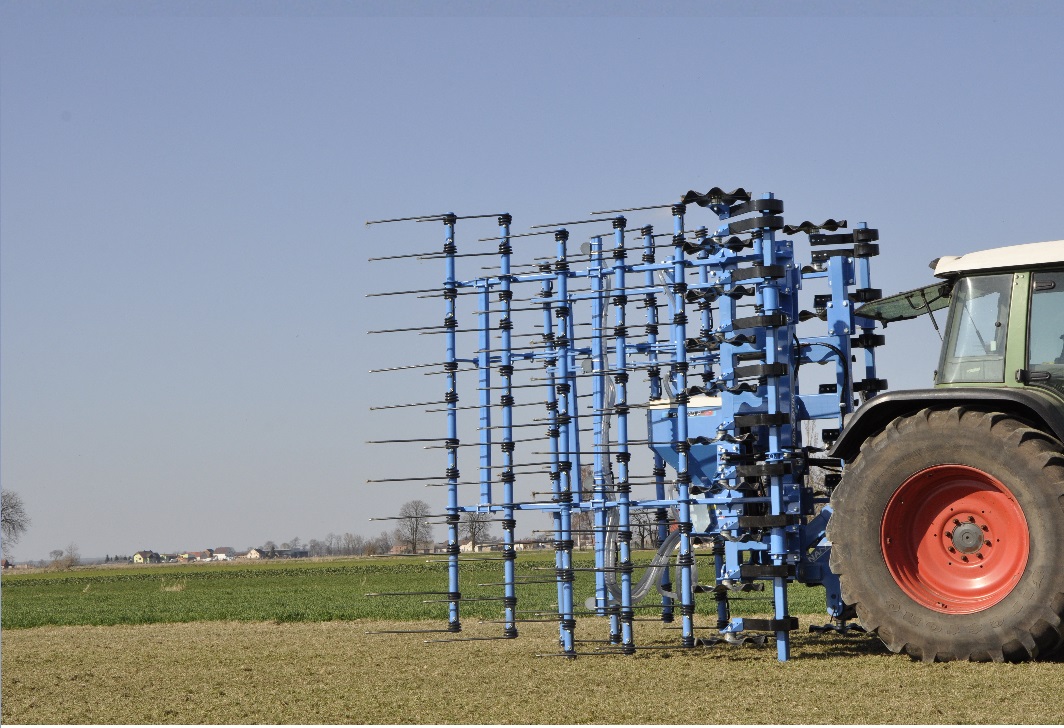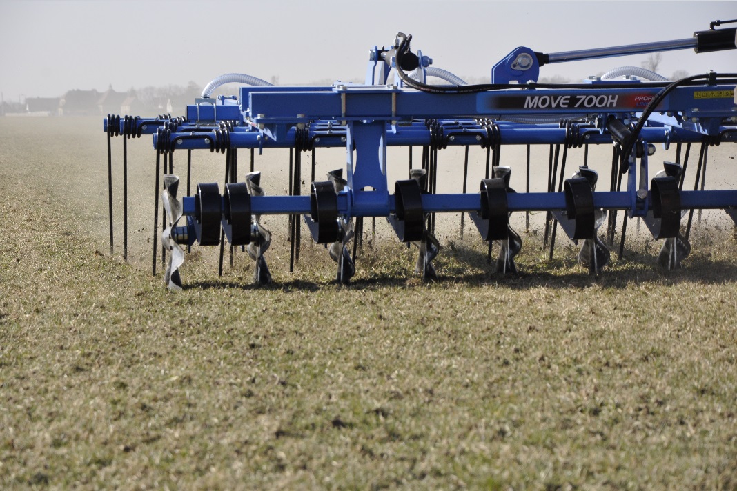 Brona mulczowa Move z amortyzacją sprężynową, służy do wzruszenia i uszkodzenia resztek pożniwnych, aktywacji kiełkowania samosiewów, oraz rekultywacji użytków zielonych. Maszyna składa się z pięciu rzędów elementów roboczych oddalonych od siebie o 500mm.