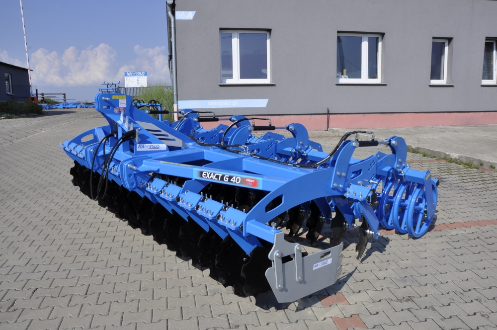 Brona talerzowa Exact G z amortyzacją gumową, służy do mieszania resztek pożniwnych. Maszyna składa się z dwóch rzędów talerzy rozstawionych od siebie w odległości 1070mm, które podczas pracy rozcinają glebę i mieszają ze sobą pozostałości roślin. Odpowiednie ułożenie talerzy pozwala na nacięcie całej gleby podczas przejazdu.
